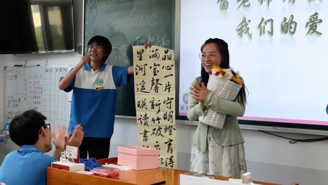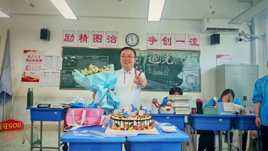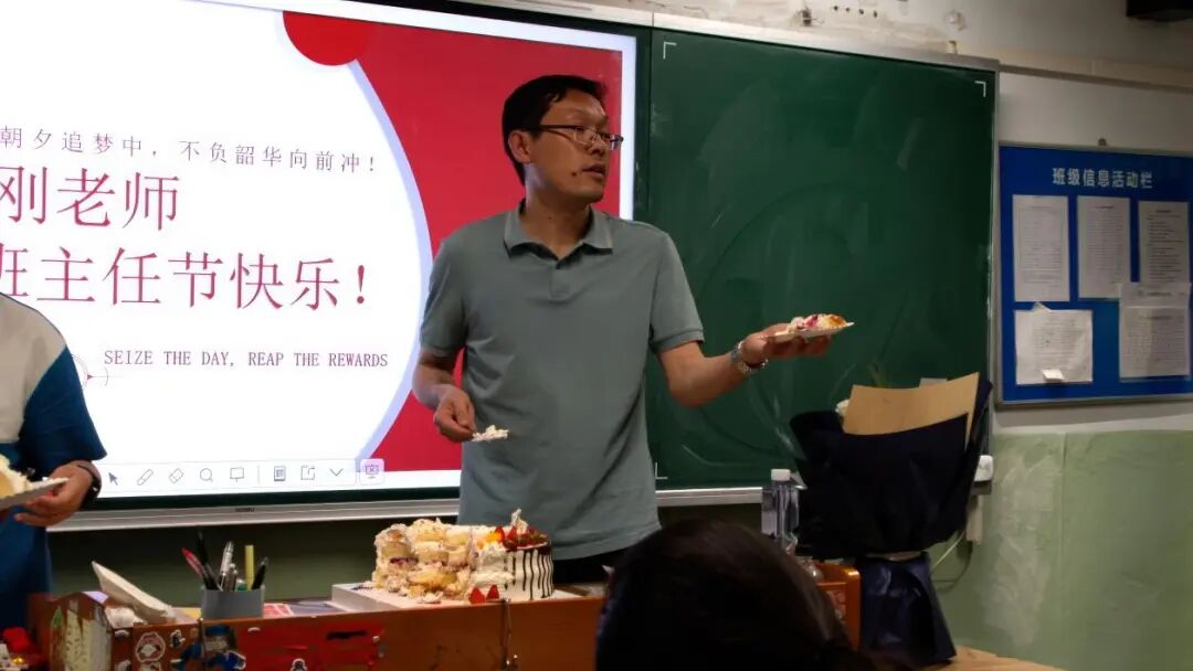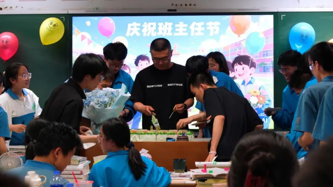 香甜的蛋糕弥漫出幸福的味道、掌声与欢笑交织,爱意在师生眼中盈盈流转。