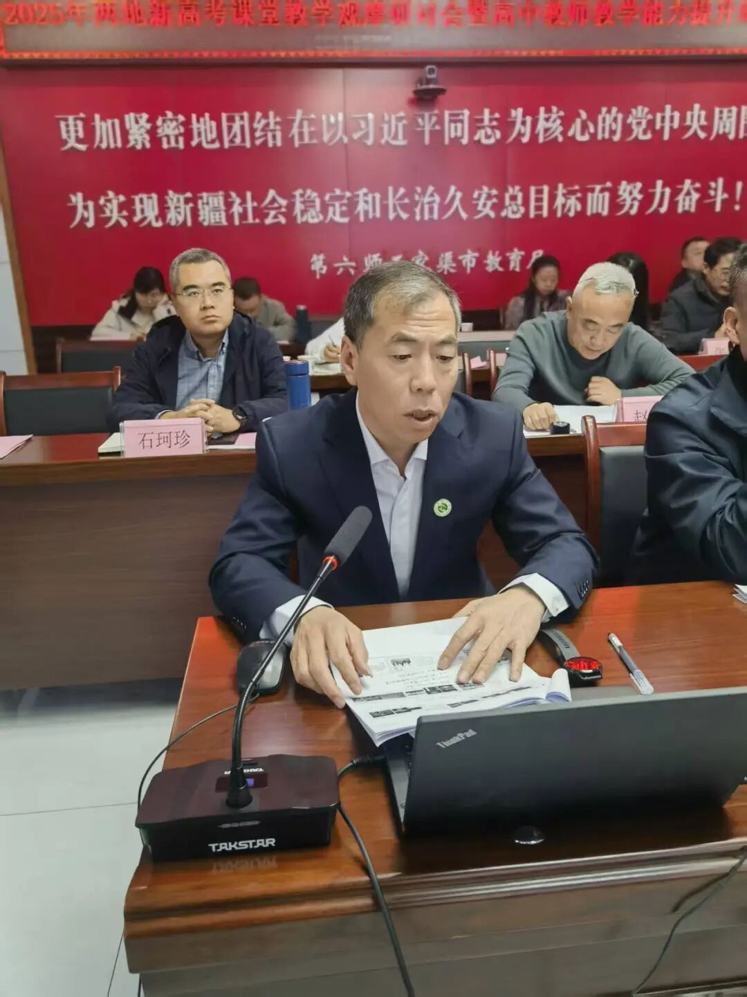 吴建平副校长在赴疆交流活动的启动仪式上做专题讲座,随后,为期三天的优质课展示进入正题。