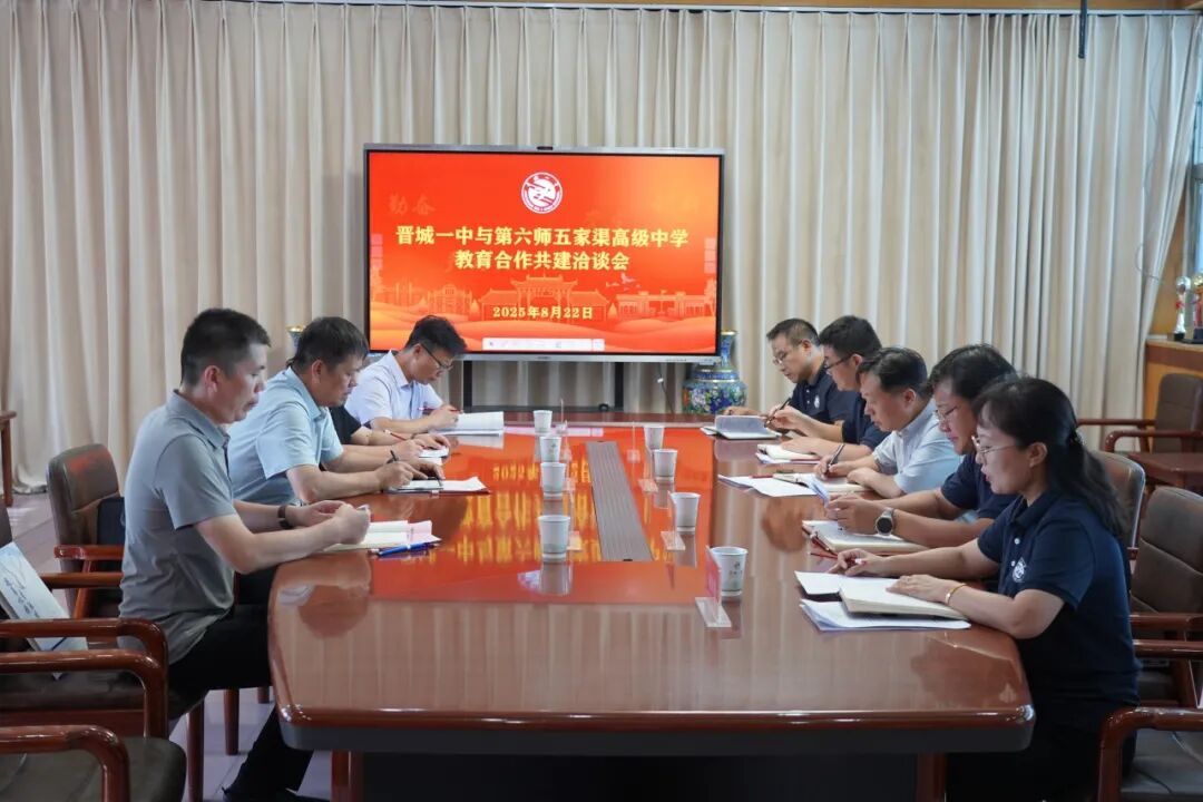 2025年8月22日,晋城一中与新疆第六师五家渠高级中学教育合作共建洽谈会举行,共谱教育交流合作新篇章。