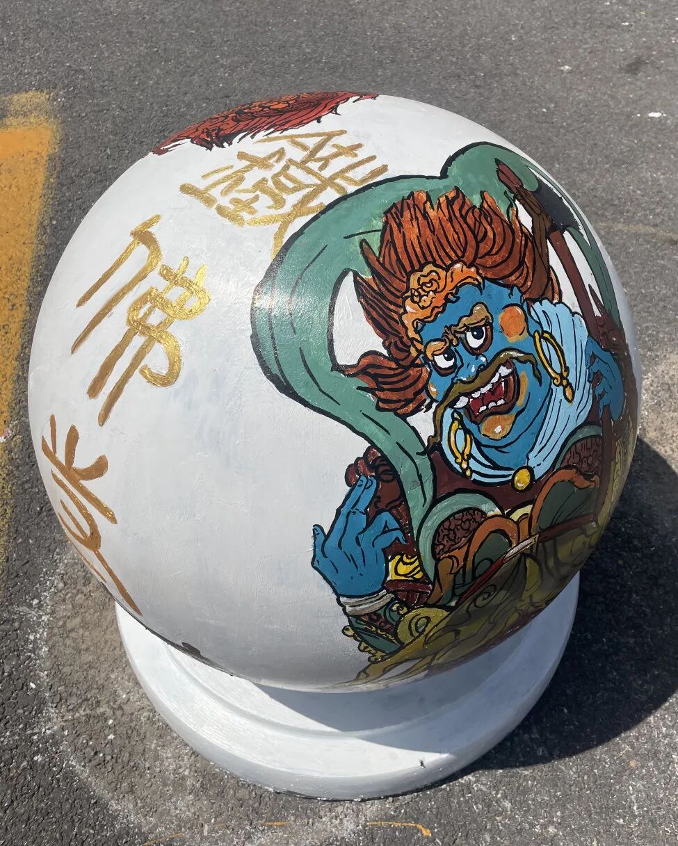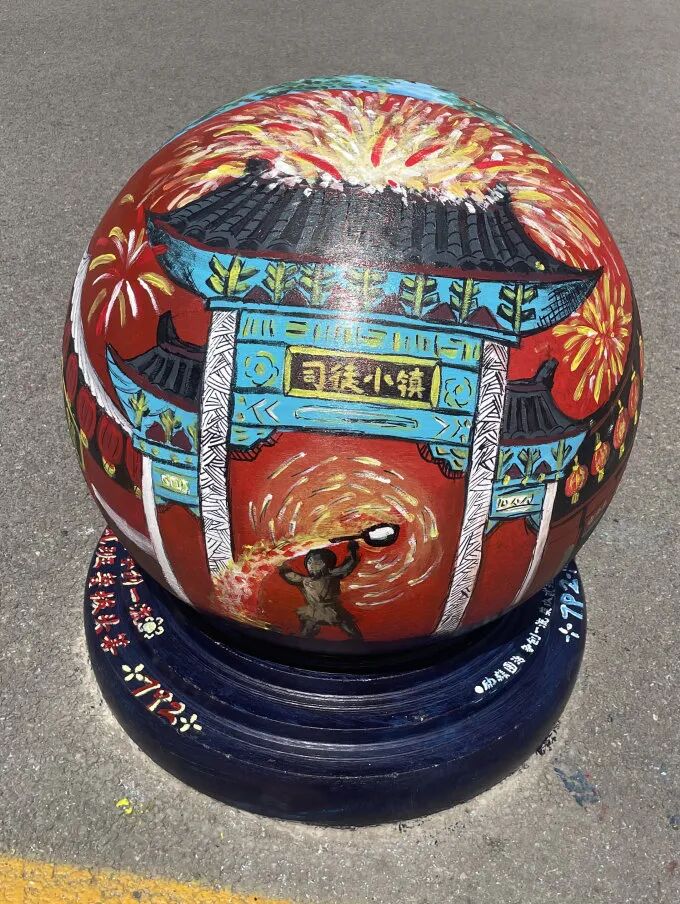 精心绘制在石墩上
