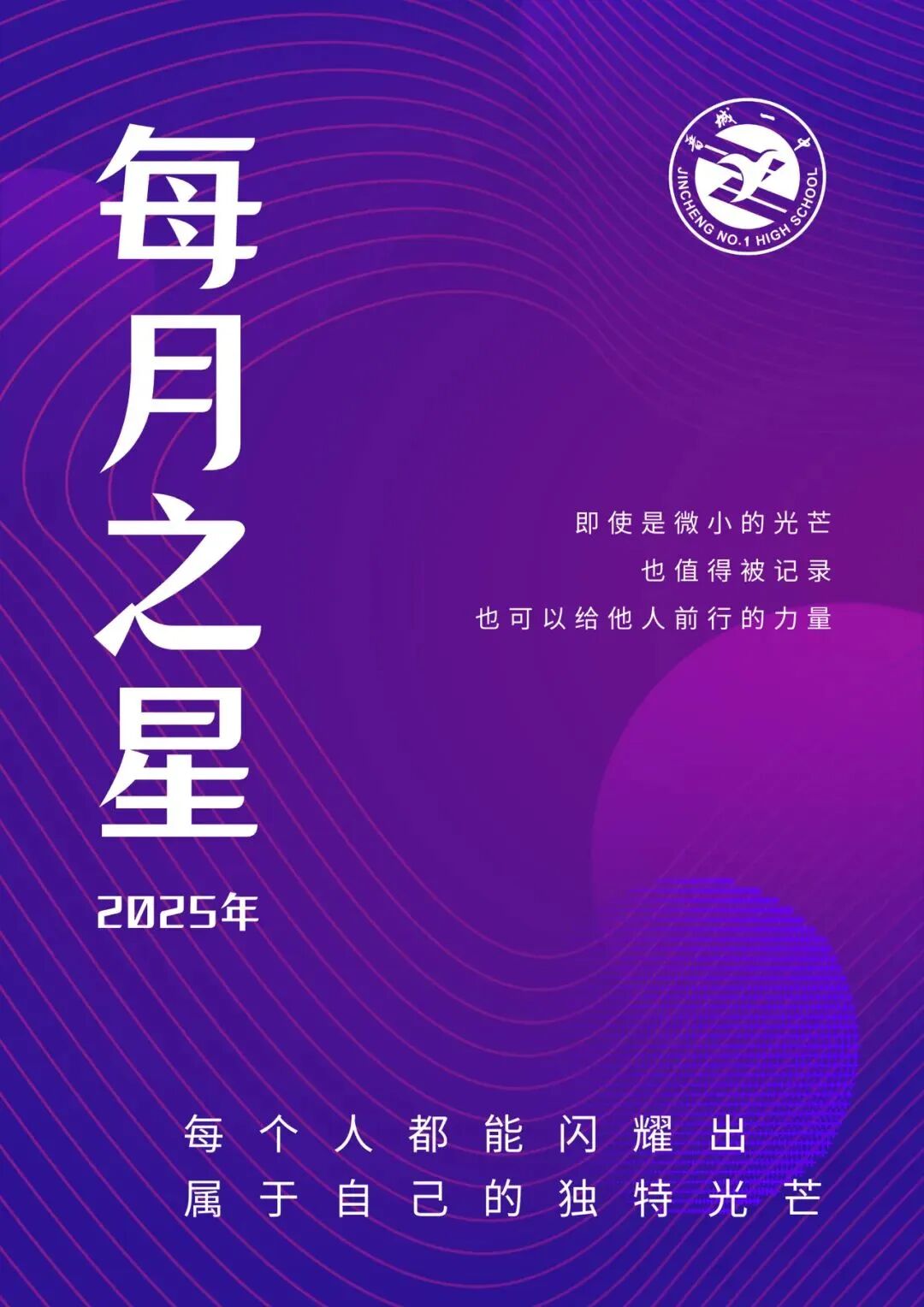 “每月之星”是晋城一中2024年推出的全新栏目。我们致力于寻找在品行、学习、艺术、体育、领导力等各个层面的闪光者。这些闪耀的瞬间或许是一次勇敢的行动、一个创新的想法、一次善良的举动,或是任何感染他人、传递美好和力量的时刻。