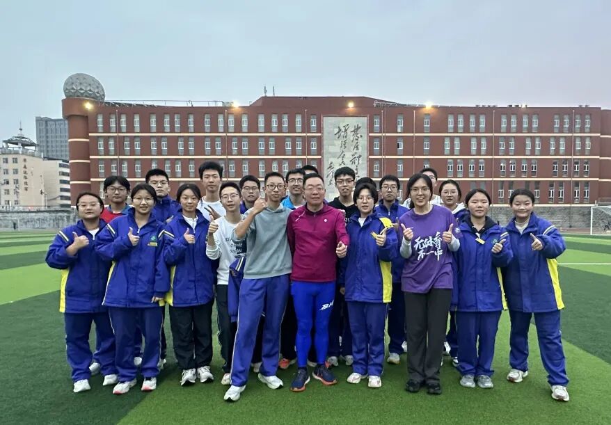 他以一场充满活力的特别仪式,开启了名誉校长之旅。清晨六点,郎光辉校长已现身校园操场,与师生、家长朋友们一道,开启了一场意义非凡的晨跑。最终,他以9.85公里的里程完成挑战,这个数字寄托着他对学弟学妹们“考上985”顶尖学府的美好期盼与深情祝福。