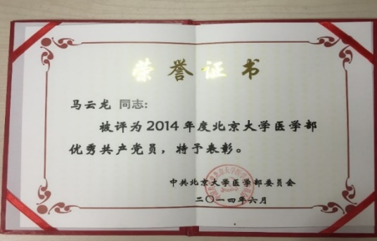 荣获北大医学部优秀专培毕业生