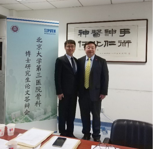 在北大五年,我直接攻读骨外科(脊柱外科方向)科研型博士研究生,师从国内著名脊柱外科专家刘晓光教授。科研型研究生与专业型研究生的培养模式截然不同,主要在实验室从事临床基础科学研究工作。每周,我还有半天的时间陪同导师出门诊,接触各种各样的脊柱外科疑难杂症。我的导师刘晓光教授不厌其烦地教导我,让我在科学研究和临床诊治方面的经验都得到了显著提升。相关研究成果也相继出炉,并多次在国家级会议上进行汇报展示。同时,研究生期间提供的机会让我各方面的能力得到了全面提升,视野进一步开阔,知识体系更加全面和专业化。