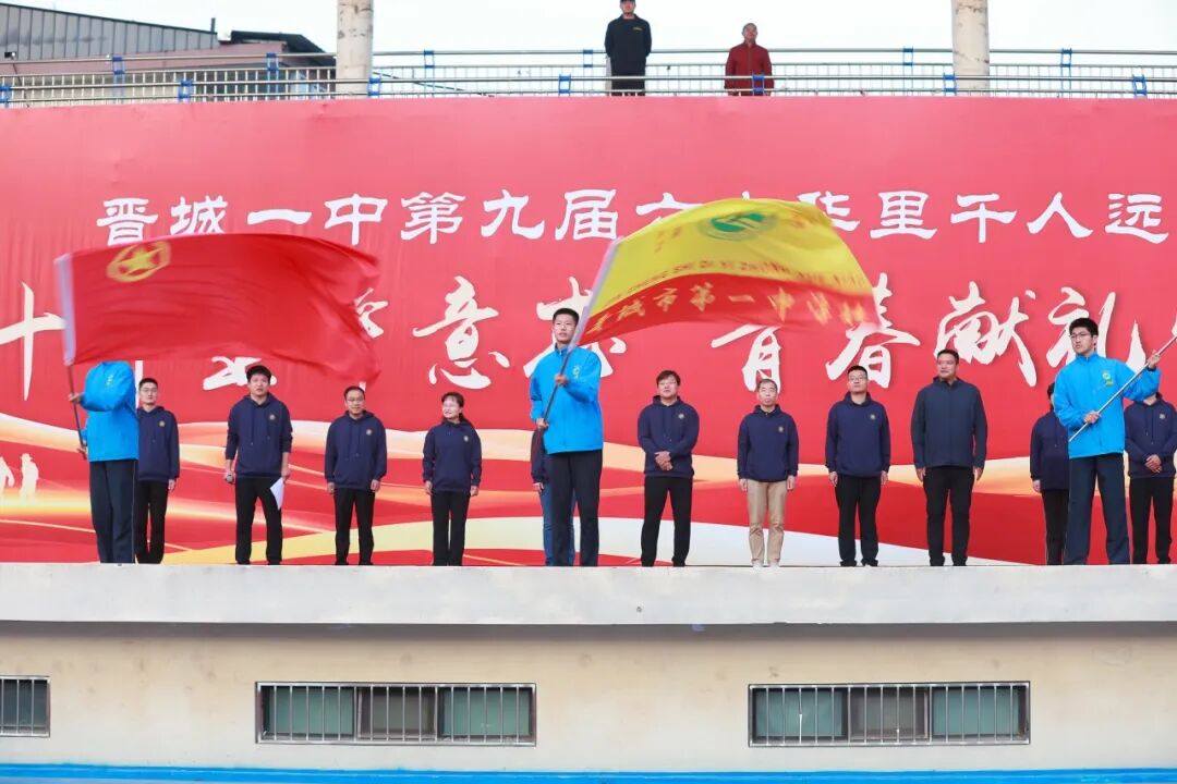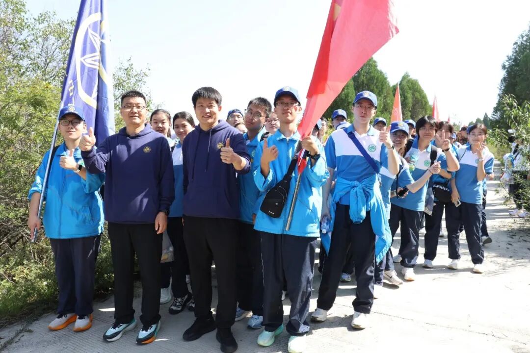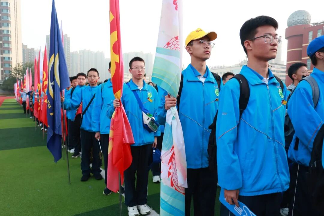 吴建平副校长、李宁副校长、刘新新主席授校旗、团旗、远足旗