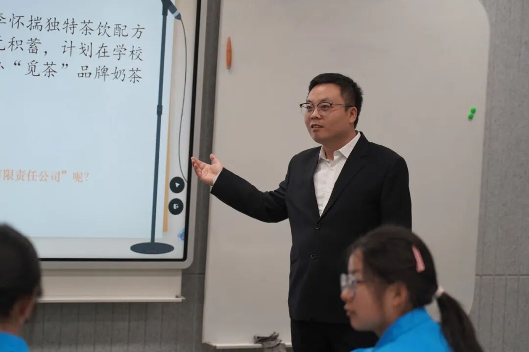高二杨国新老师以“打造长远企业”为总议题,结合奶茶店、瑞幸咖啡等案例,讲解市场主体与竞争规则,涵养法治意识与诚信理念,彰显思政课育人价值。