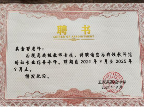 资深教师超越个人课堂,致力于成为教育理念的“播种机”和教师成长的“助推器”,积极参与“青蓝工程”,与本地青年教师结对,进行“传、帮、带”。张瑞新老师担任五家渠高级中学教研室副主任,通过讲座《课堂教学的深度思考》和常态化教研评课,为青年教师指明方向;茹军霞老师指导的徒弟在教学比赛中屡获佳绩;李东、张涛老师则通过示范课、参与“一课四评”和精品课评选,与当地教师深度交流,共同探索适合学情的教学法。