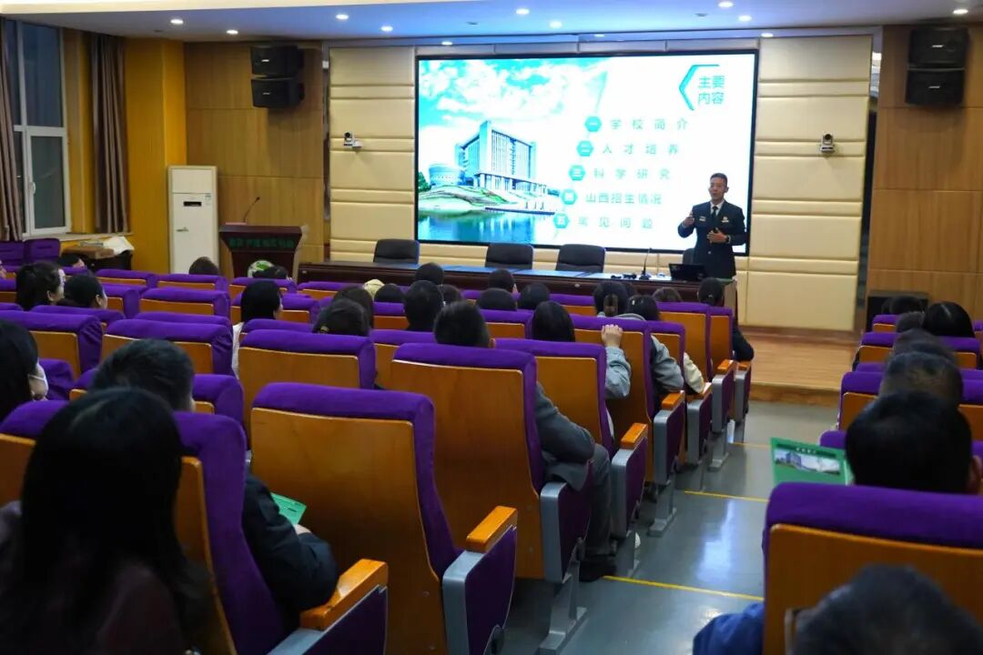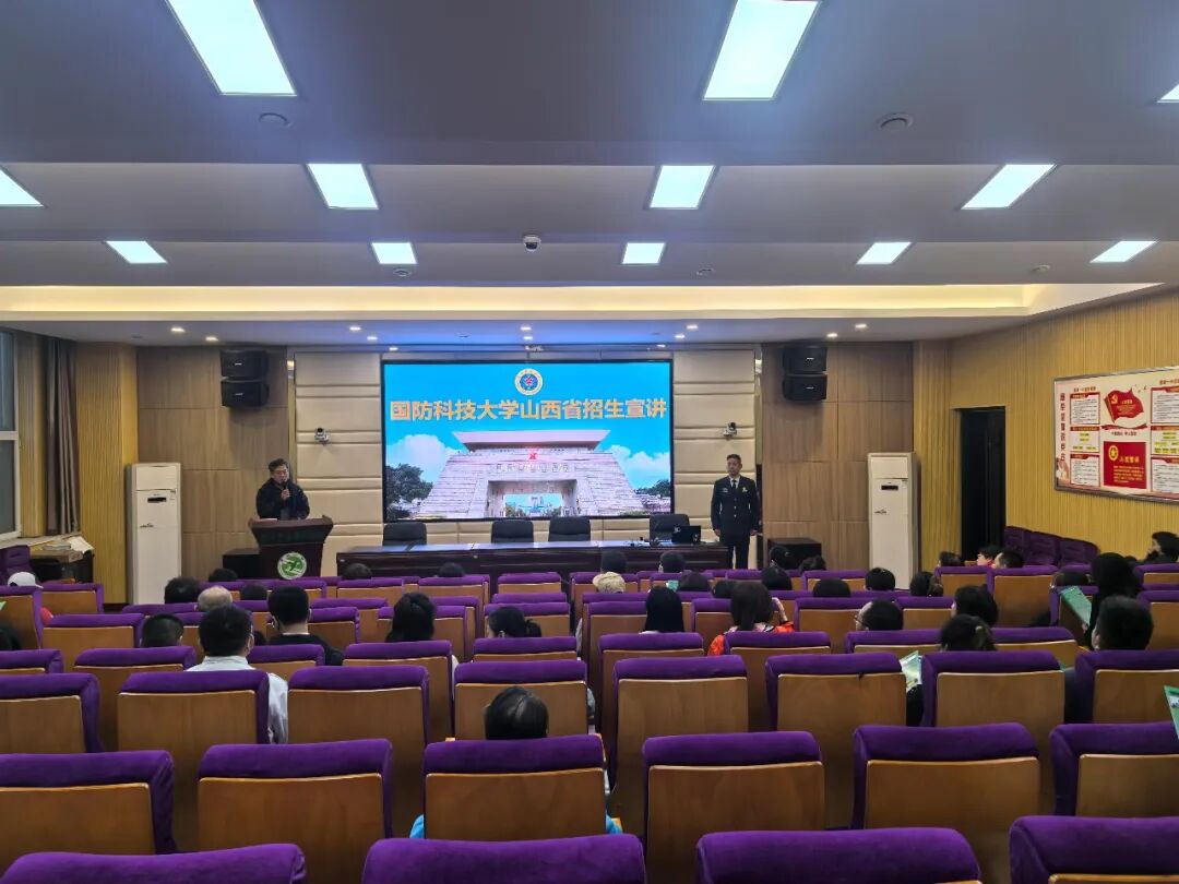 4月9日,国防科技大学招生宣讲会在晋城一中图书馆报告厅顺利举行。国防科技大学山西省招生组组长张鲁老师、晋城地区招生老师杨茜如、外国语学院文科组招生老师杨茜莅临现场,为高三家长带来权威、全面的招生政策解读,助力学子规划升学、圆梦强军。